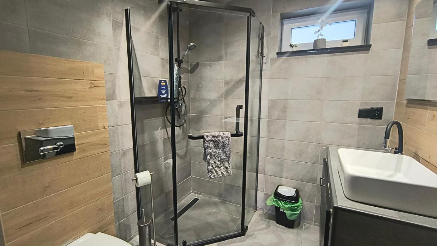 Zaplecze odnowy biologicznej obiektu Domki Mała Tresna obejmuje saunę i wannę z hydromasażem.