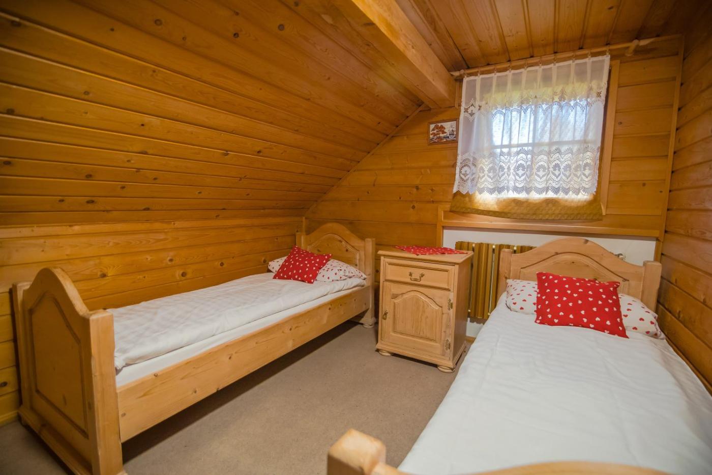 Dom z 2 sypialniami. The holiday homes kitchen, which has kitchenware, is available for cooking and storing food. The holiday home features heating, a terrace and garden views. The unit offers 7 beds. Dom wakacyjny - 6 osobowy. Powierzchnia pokoju ok.: 120 mkw.
